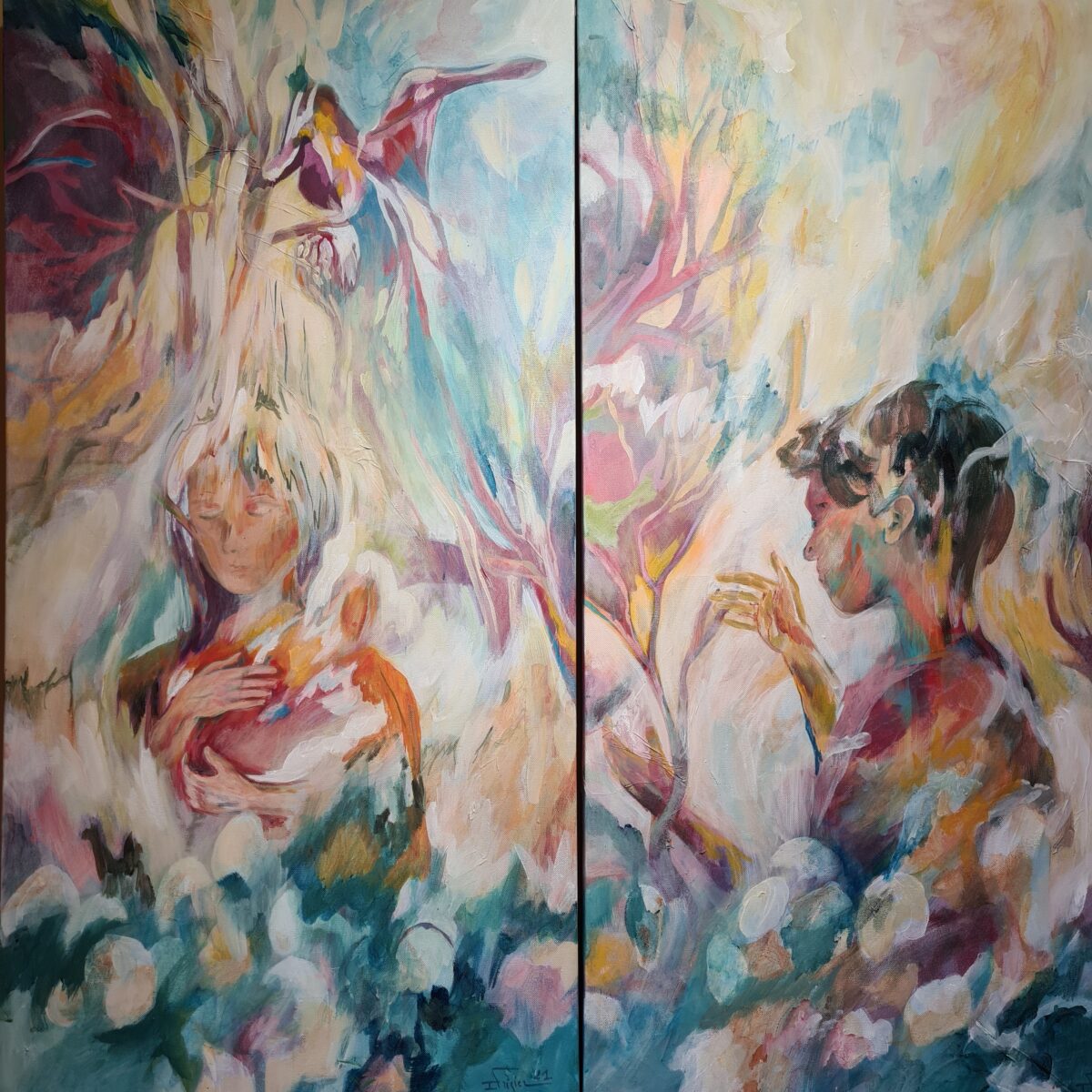 60x120 Acrylique et encre sur toile sans châssis (enroulable) 2025La foule des anges – 1